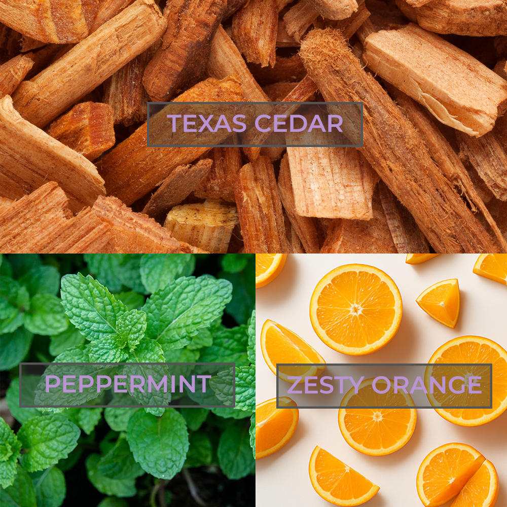 • 1x Peppermint - 1x Zesty Orange - 1x Texas Cedar